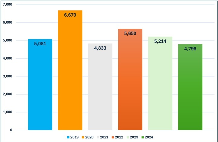 Die vergleichsweise niedrigere Gesamtzahl für 2024 sollte daher mit Vorsicht interpretiert werden. Wie bereits erwähnt, fehlen noch die konsolidierten Jahresdaten von drei Organisationen, die normalerweise einen erheblichen Beitrag leisten, insbesondere im Vereinigten Königreich und in Italien. Auf der Grundlage der jüngsten historischen Werte würde die Einbeziehung dieser fehlenden Daten wahrscheinlich mehrere hundert zusätzliche Meldungen in der Größenordnung von 700 bis 800 Fällen hinzufügen, wodurch die Gesamtzahl für 2024 nahe an die von 2023 heranreichen würde. Der offensichtliche Rückgang im Jahr 2024 spiegelt somit eher die begrenzte Verfügbarkeit von Daten wider als einen bedeutenden Rückgang der Meldungen selbst.